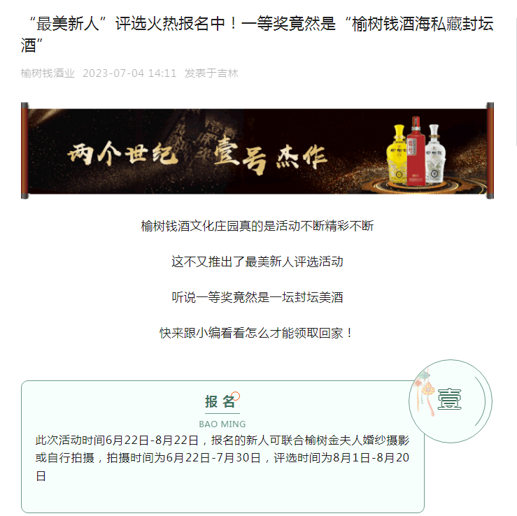 “***美新人”评选火热报名中!一等奖竟然是“榆树钱酒海私藏封坛酒