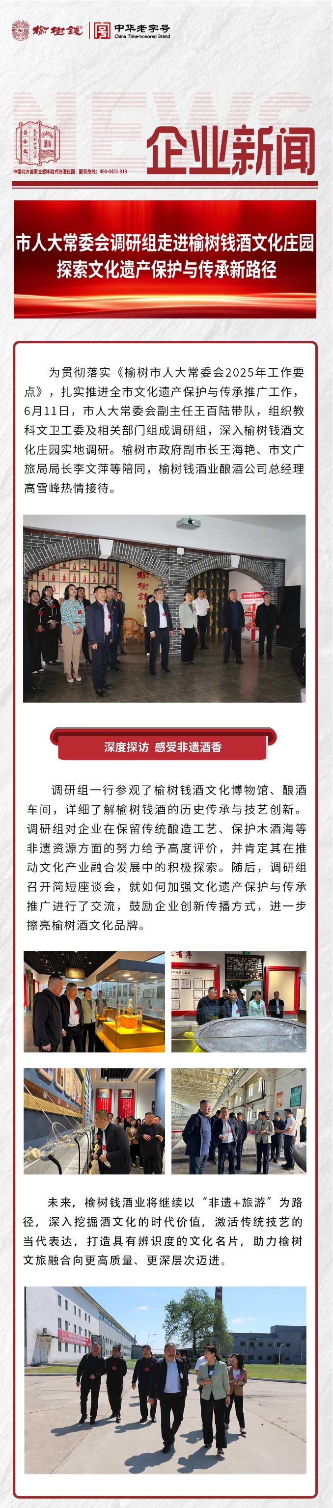 市人大常委会调研组走进榆树钱酒文化庄园|探索文化遗产保护与传承新路径